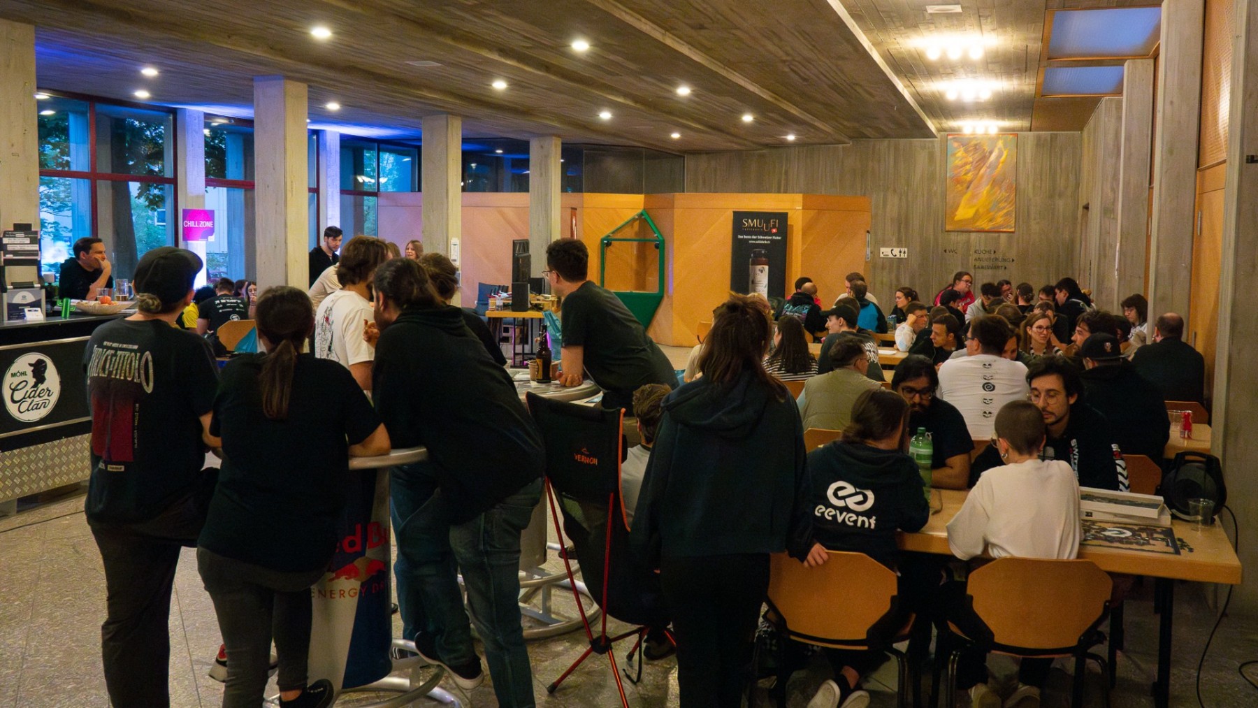 Der EEvent #17 vom 6.6 bis 9.6.2025 war wieder einmal alles, nur keine normale LAN-Party. Mit rund 240 Leuten wurde das ganze Wochenende gezockt, gechillt, gelacht und definitiv zu wenig geschlafen. Wenn man mal genug vom Bildschirm hatte, konnte man in der Chill Area runterfahren oder bei Tabletop, Magic und D&D etwas komplett anderes machen. Draussen gab’s Beachvolleyball, Skatepark, Badi und Abende am See mit Grill, Sommerfeeling pur.